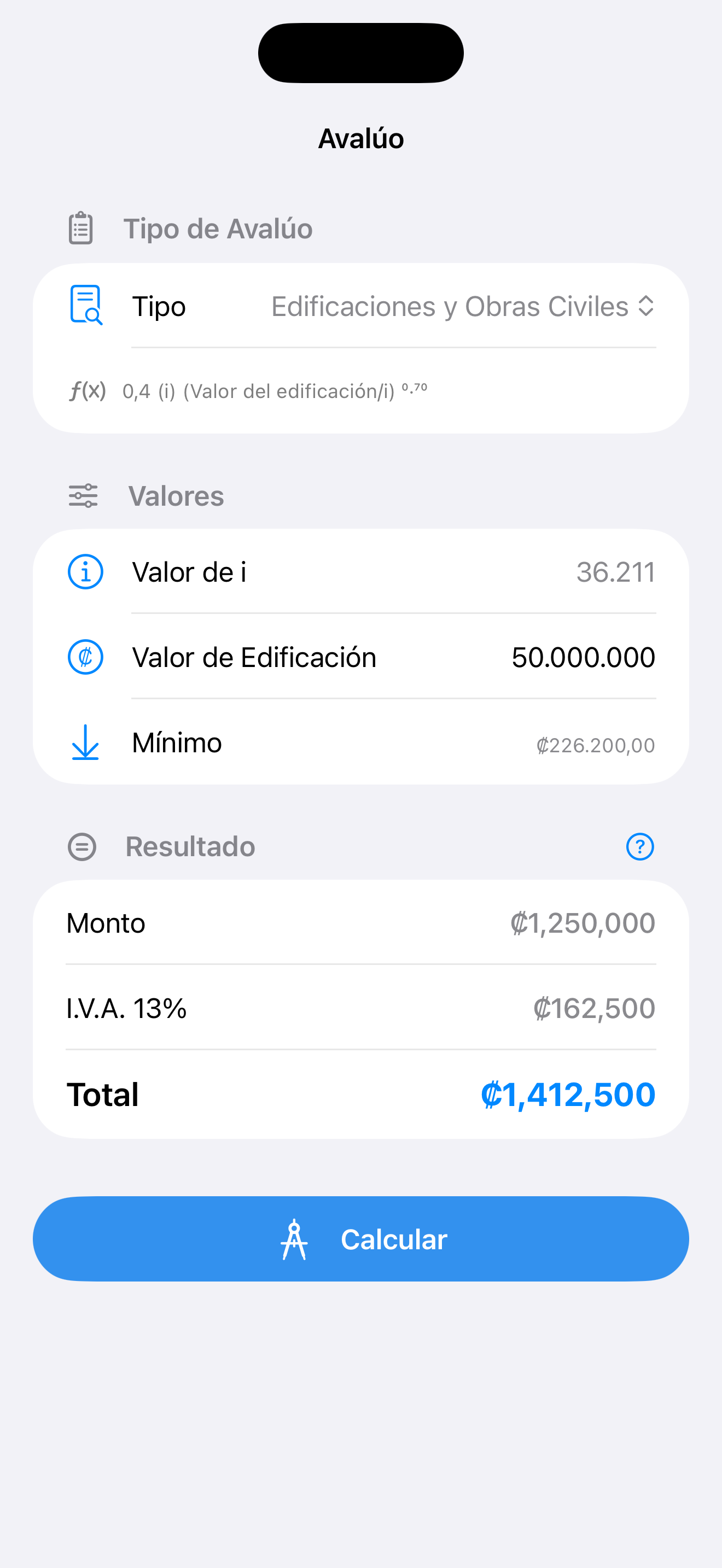Permite calcular honorarios de agrimensura, curvas de nivel y avalúos.
